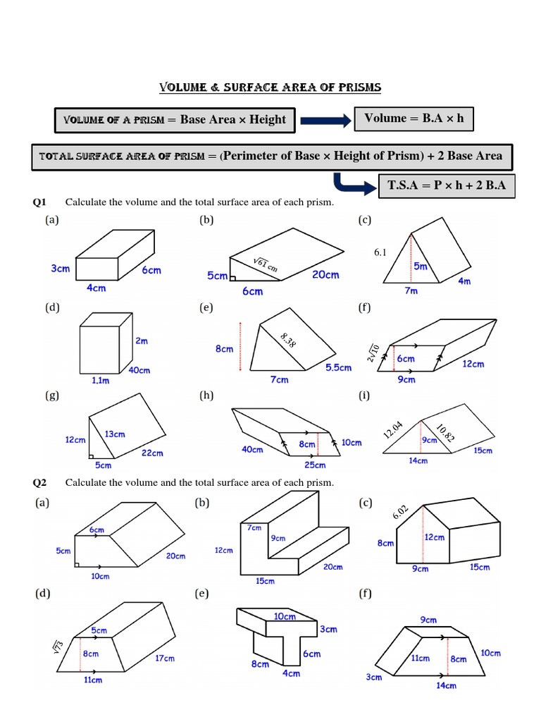 In conclusion, surface area worksheets for prisms are valuable tools for students to practice and master the skills needed to calculate the surface area of different types of prisms. By working through these worksheets, students can enhance their understanding of the formulas and concepts related to surface area and develop their problem-solving abilities. Practicing with surface area worksheets can help students build confidence in their mathematical skills and prepare them for more advanced geometry topics.