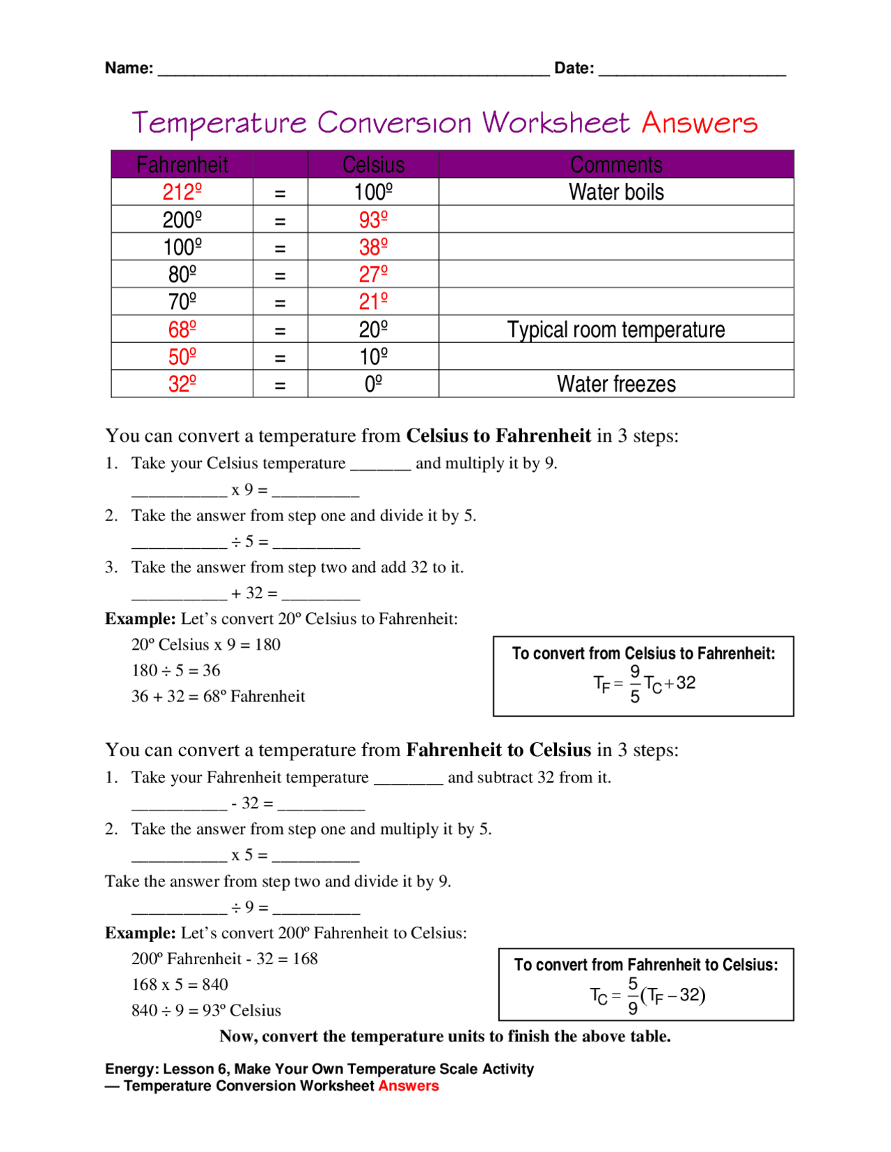 Temperature conversion is a fundamental concept in physics and everyday life. It is important to be able to convert temperatures between different units to understand weather forecasts, cooking recipes, and scientific data. A temperature conversion worksheet is a useful tool to practice and test your knowledge of converting temperatures.