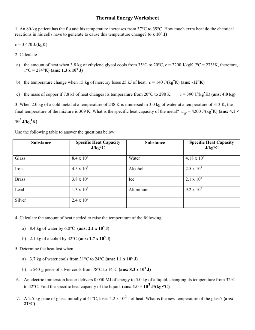 By engaging with thermal energy worksheets, students can enhance their problem-solving skills, develop a better understanding of heat and temperature, and improve their ability to analyze thermal energy-related phenomena. The hands-on nature of these worksheets allows students to actively participate in their learning and gain practical experience in applying thermal energy concepts to solve problems.