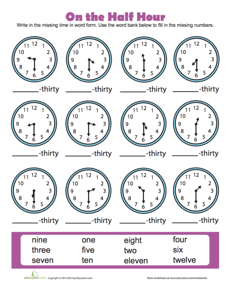 Teaching children how to tell time is an important skill that they will use throughout their lives. Understanding time to the hour and half hour is a fundamental concept that lays the foundation for more advanced time-telling skills. One way to reinforce this learning is through the use of worksheets that provide practice and repetition.