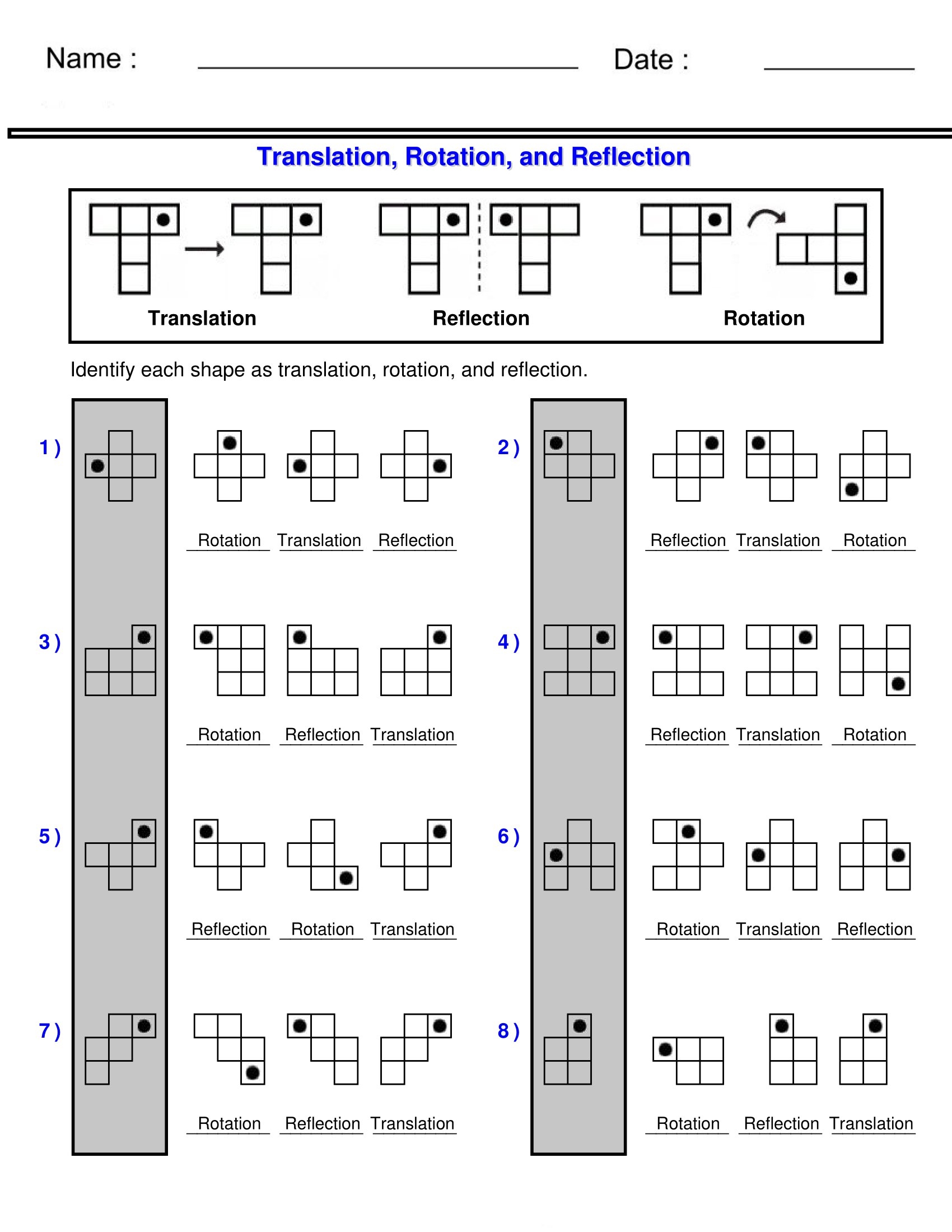When it comes to learning geometry, understanding transformations such as translation, rotation, and reflection is essential. These concepts help us understand how shapes and figures can move and change in space. One way to practice and reinforce these concepts is through worksheets that provide exercises for students to apply their knowledge.