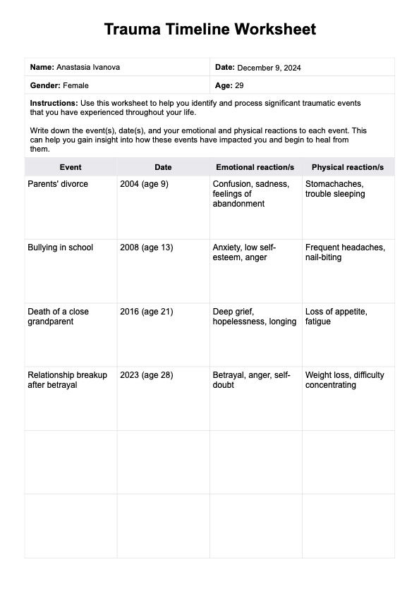 Trauma Timeline Worksheet