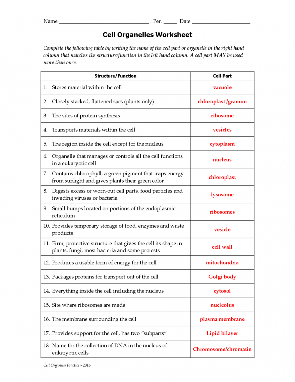 One of the most common ways to learn about cell organelles is through worksheets that provide information and activities for students to complete. These worksheets typically include diagrams of cells with labels for each organelle, as well as questions that test students’ knowledge of the functions of each organelle. By completing these worksheets, students can deepen their understanding of cell biology and reinforce their learning.