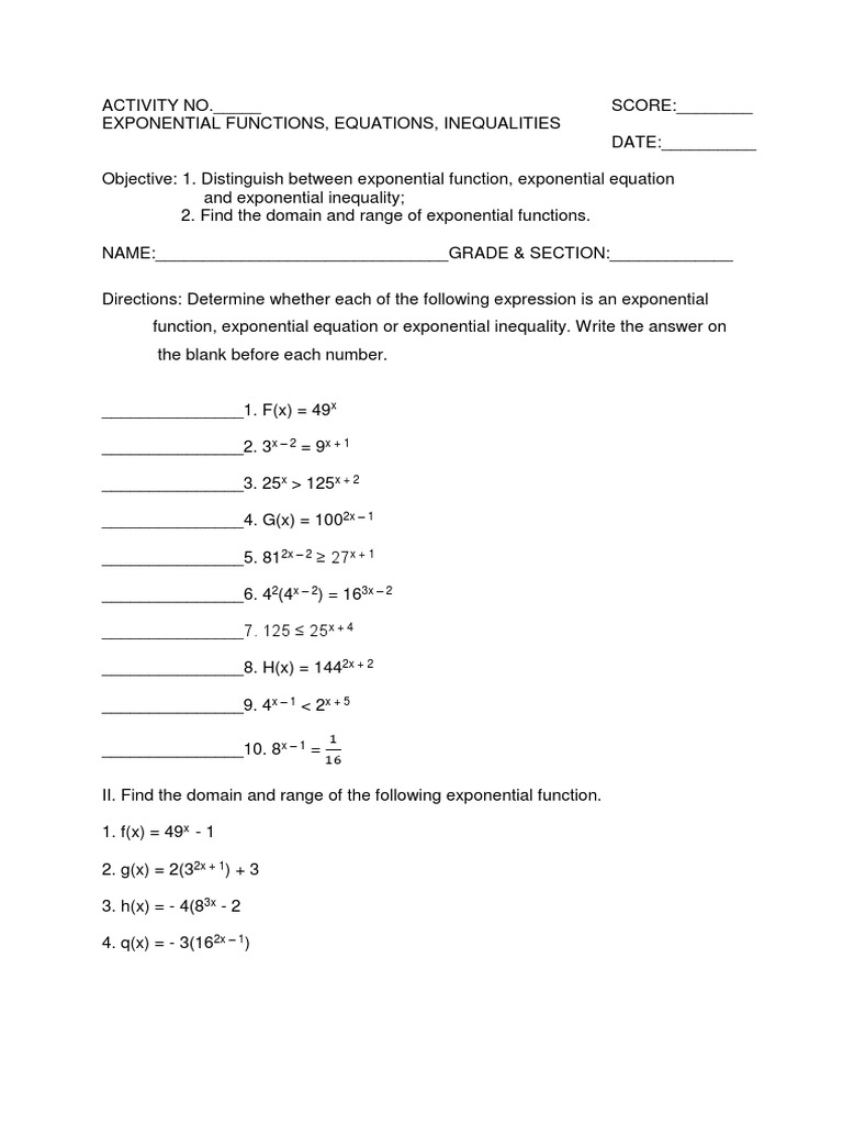 Furthermore, worksheets can be a valuable tool for teachers to assess their students’ understanding of exponential functions. By reviewing the solutions submitted by students, teachers can gauge the level of comprehension and tailor their instruction accordingly. This feedback loop can help both students and teachers track progress and make adjustments as needed.