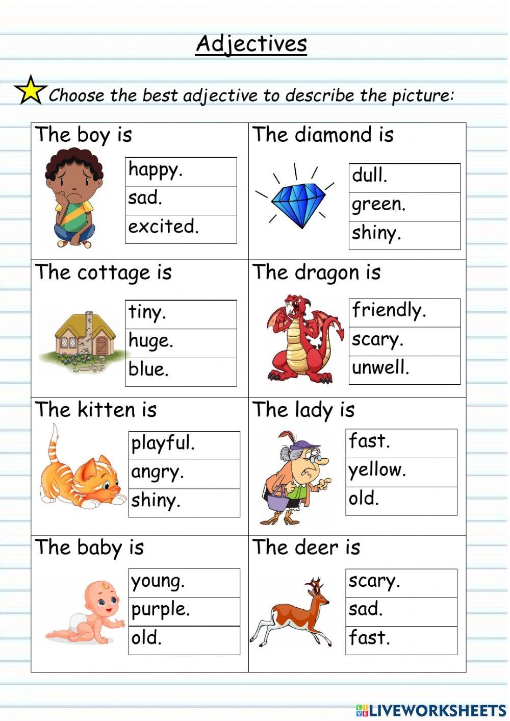Adjectives are an essential part of the English language as they help to describe and give more information about nouns. They play a crucial role in making sentences more vivid and interesting. Teaching students about adjectives can be fun and engaging, especially when using worksheets to reinforce their understanding. Below is a worksheet on adjectives that can be used in the classroom to help students practice identifying and using adjectives correctly.