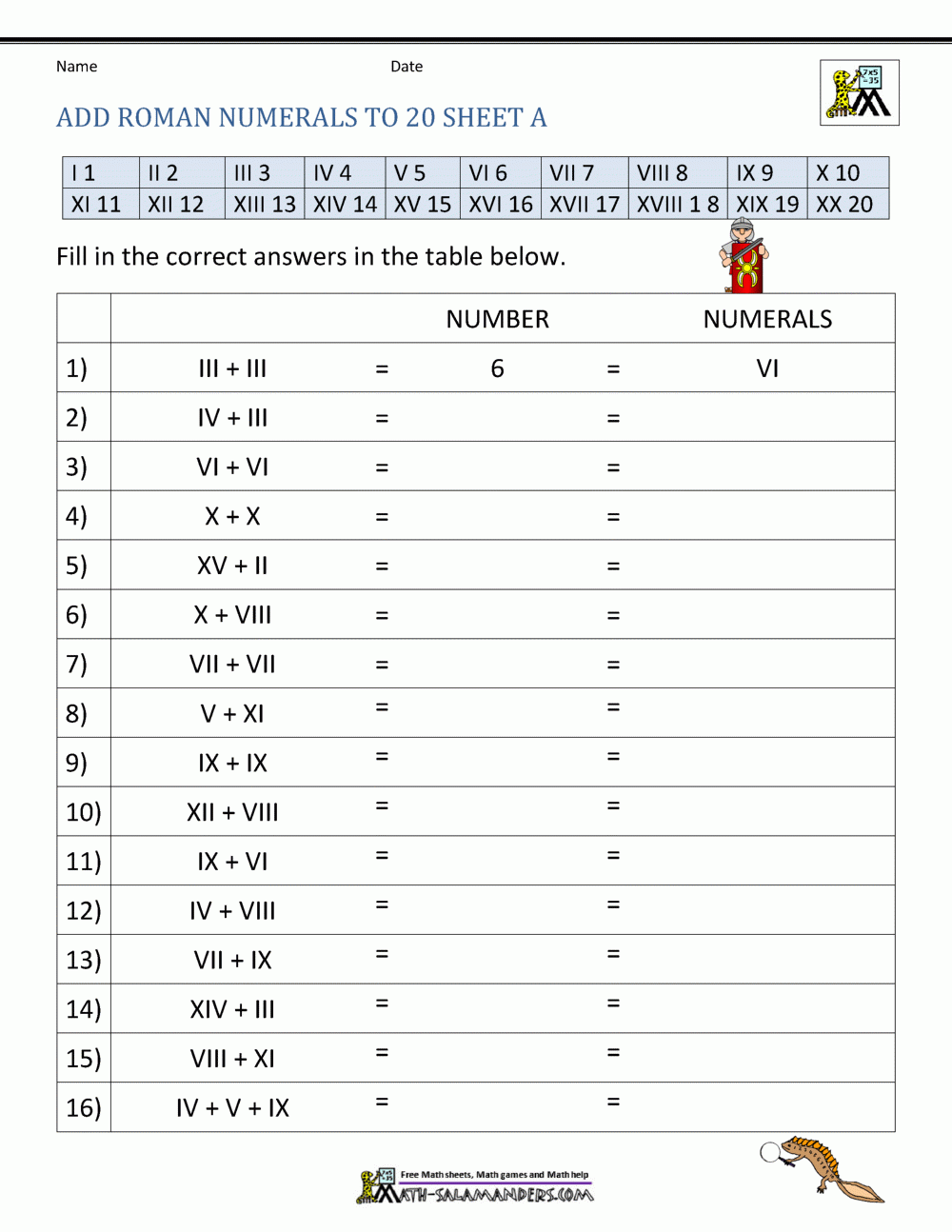 One example of a worksheet on Roman numerals could include a series of numbers written in Arabic numerals, and students would be tasked with converting them into Roman numerals. This exercise can help students practice converting numbers between different numerical systems and improve their ability to recognize and decipher Roman numerals.