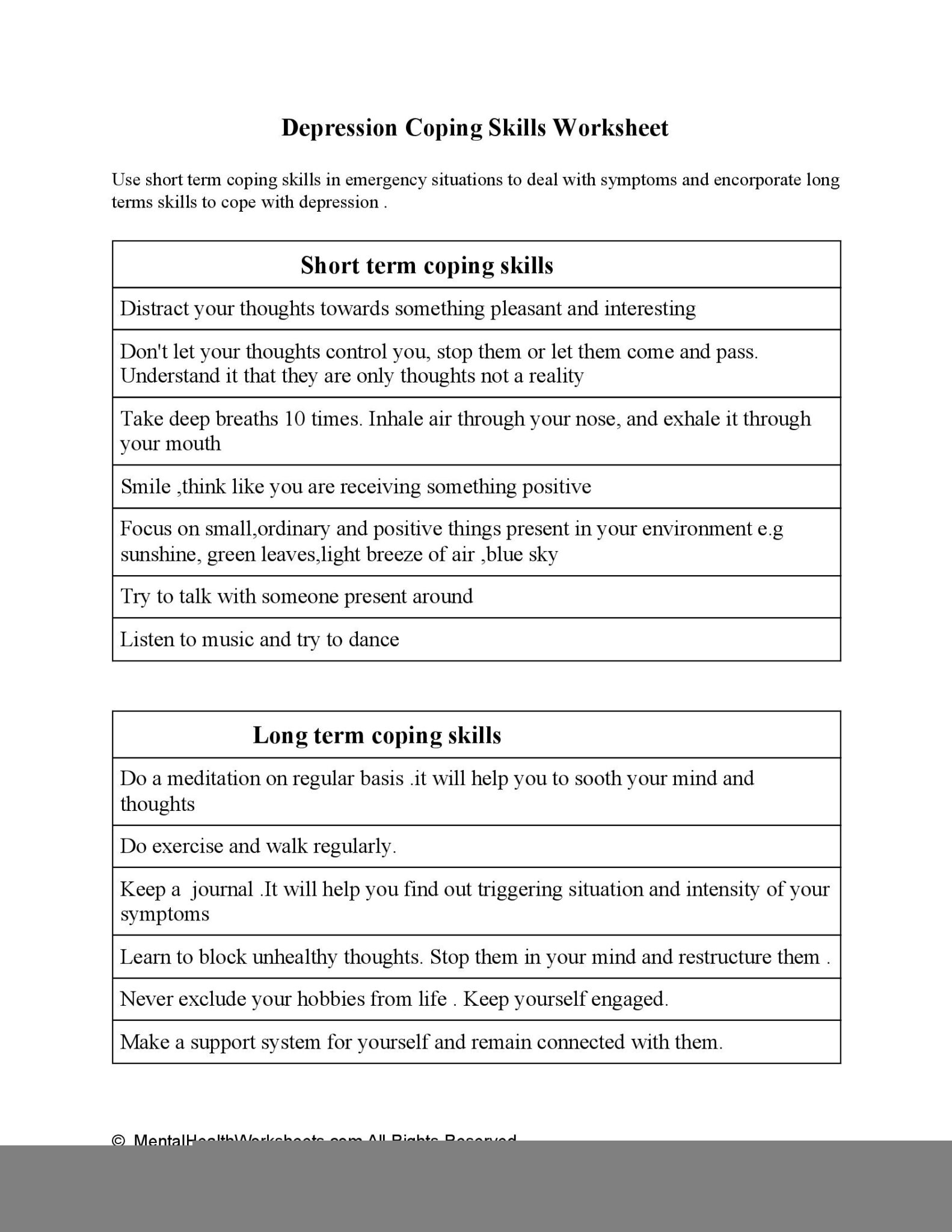 Worksheets for Coping Skills