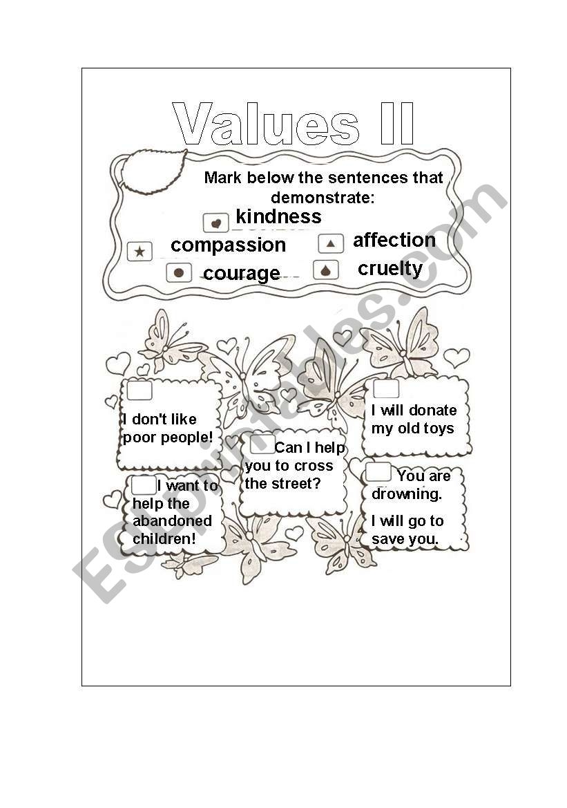 Overall, worksheets on values are a valuable resource for educators and parents who want to instill important values in children. By engaging children in activities that promote reflection, critical thinking, and empathy, these worksheets can help children develop a strong moral compass and make ethical decisions in their daily lives.