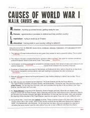 World War 1 Causes Worksheet