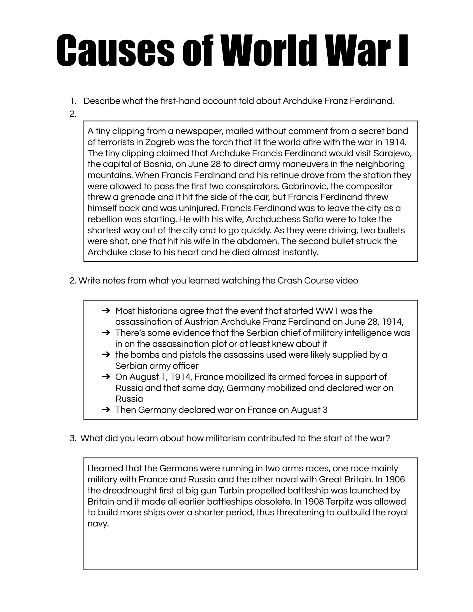 The worksheet can also guide students in examining the underlying causes of the war, such as nationalism, imperialism, and militarism. These factors contributed to the tensions that were simmering in Europe and ultimately erupted into a full-scale war. By exploring these causes in depth, students can gain insights into the complexities of international relations and the impact of these factors on global conflicts.